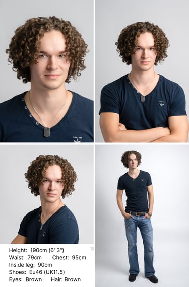 Looking to refresh your portfolio or take your career to the next stage? Whether you're a model or actor, a standout photoshoot can open doors. We'll create professional images that capture your range and personality, whilst meeting the brief for agencies. Perfect for casting calls, agencies, and promotional use. Need comp cards? We can take care of those too, so you're ready to put your best face forward.